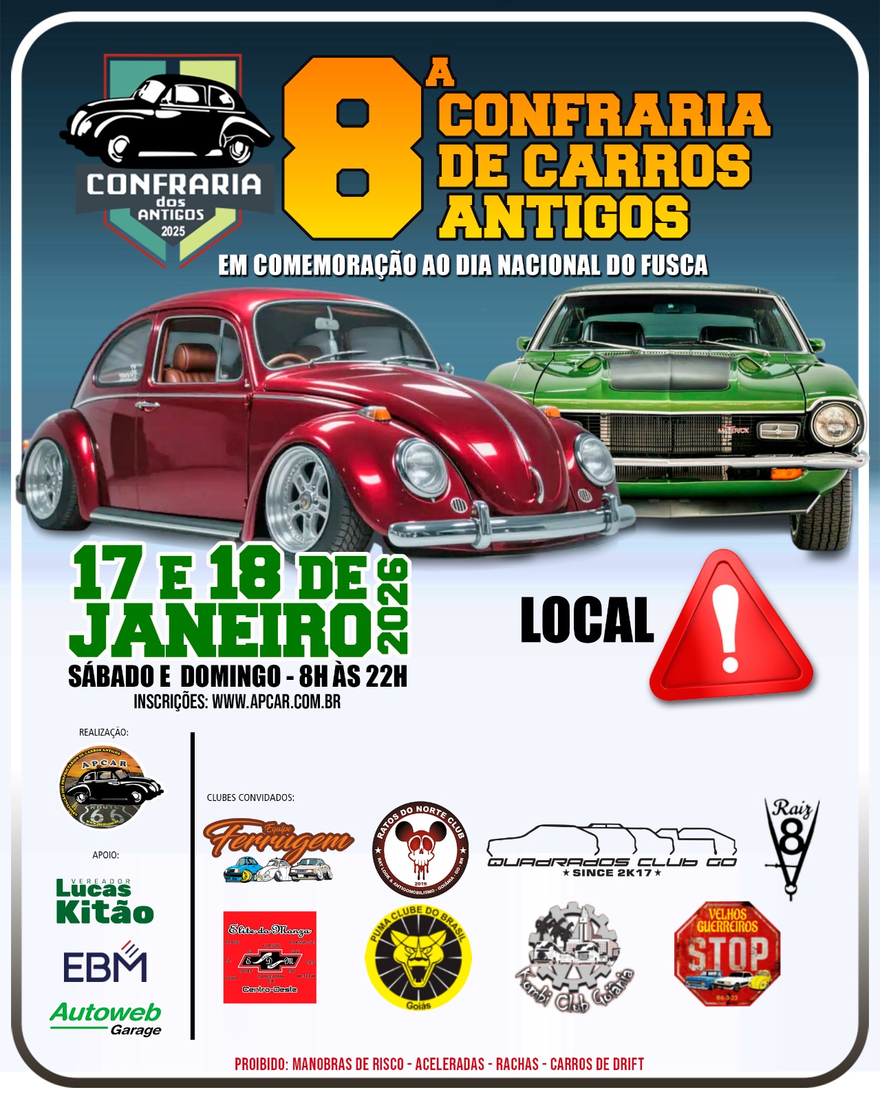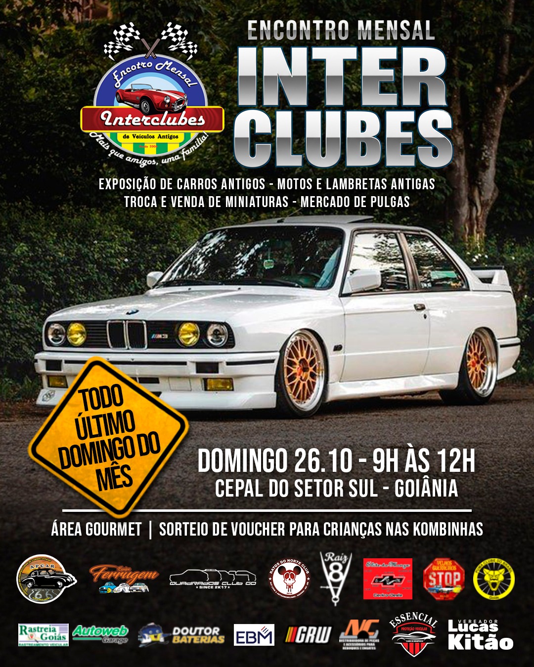 Como todo último Domingo de cada mês, dia 26 de Outubro de 2025 acontece mais uma edição do Encontro Mensal Interclubes de Carros Antigos, o mais tradicional encontro de Clubes de Goiânia. No Cepal do Setor Sul, a partir das 09hs.