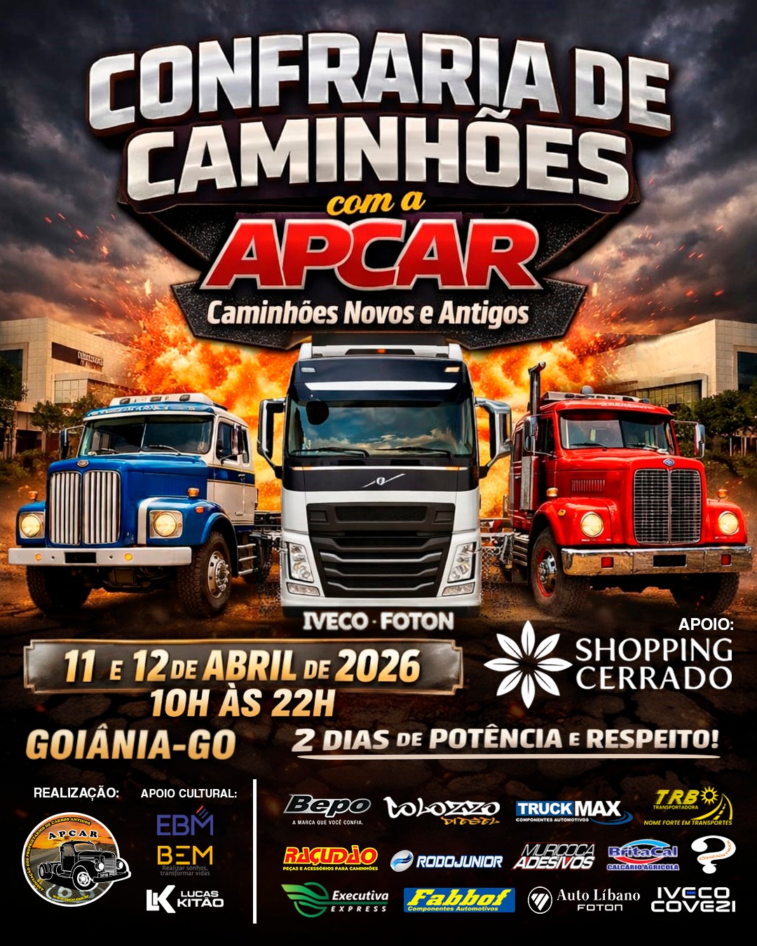 Confraria de Gigantes com a APCAR no Shopping Cerrado em Goiânia GO, será dois dias de muita potência, força e postura, a elegância maioral da estrada em Goiânia no estacionamento do Shopping Cerrado, dias 11 e 12 de Abril!